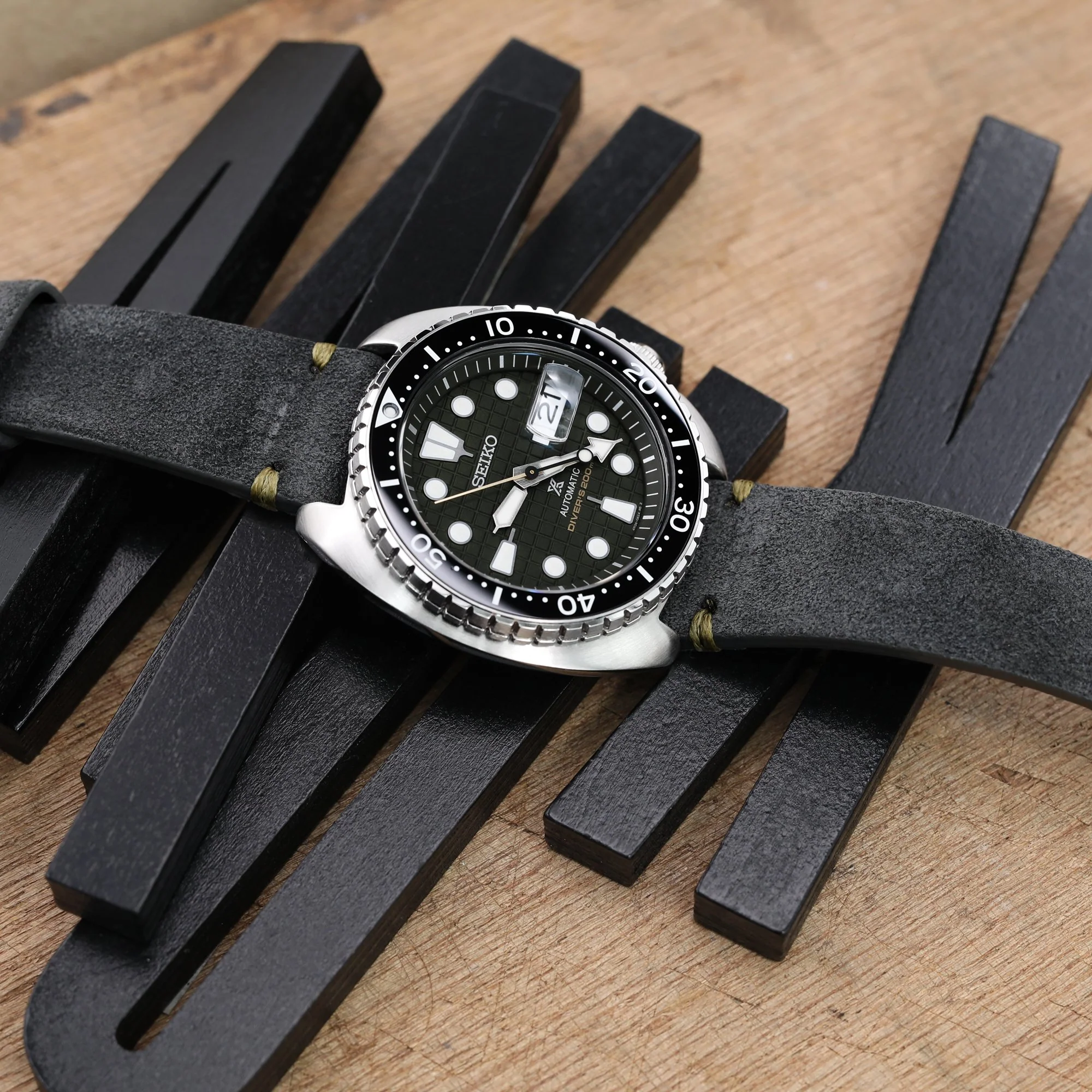 22mm Grey Quick Release Italian Suede Leather Watch Strap, Military Green St.