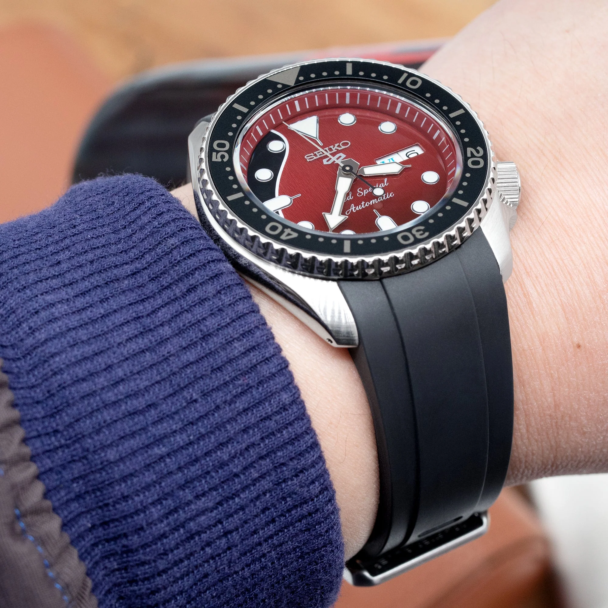 - Crafter Blue introduces its latest and most innovative FKM rubber strap crafted specifically for lug 22mm Seiko 5 Sports 2019 line. As pioneers in developing alternative watch straps for some iconic Seiko collections, Crafter Blue offers unparalleled comfort, style, and durability. This waterproof and highly supple design of the FKM rubber watch band makes it the ultimate choice for watch wearers.