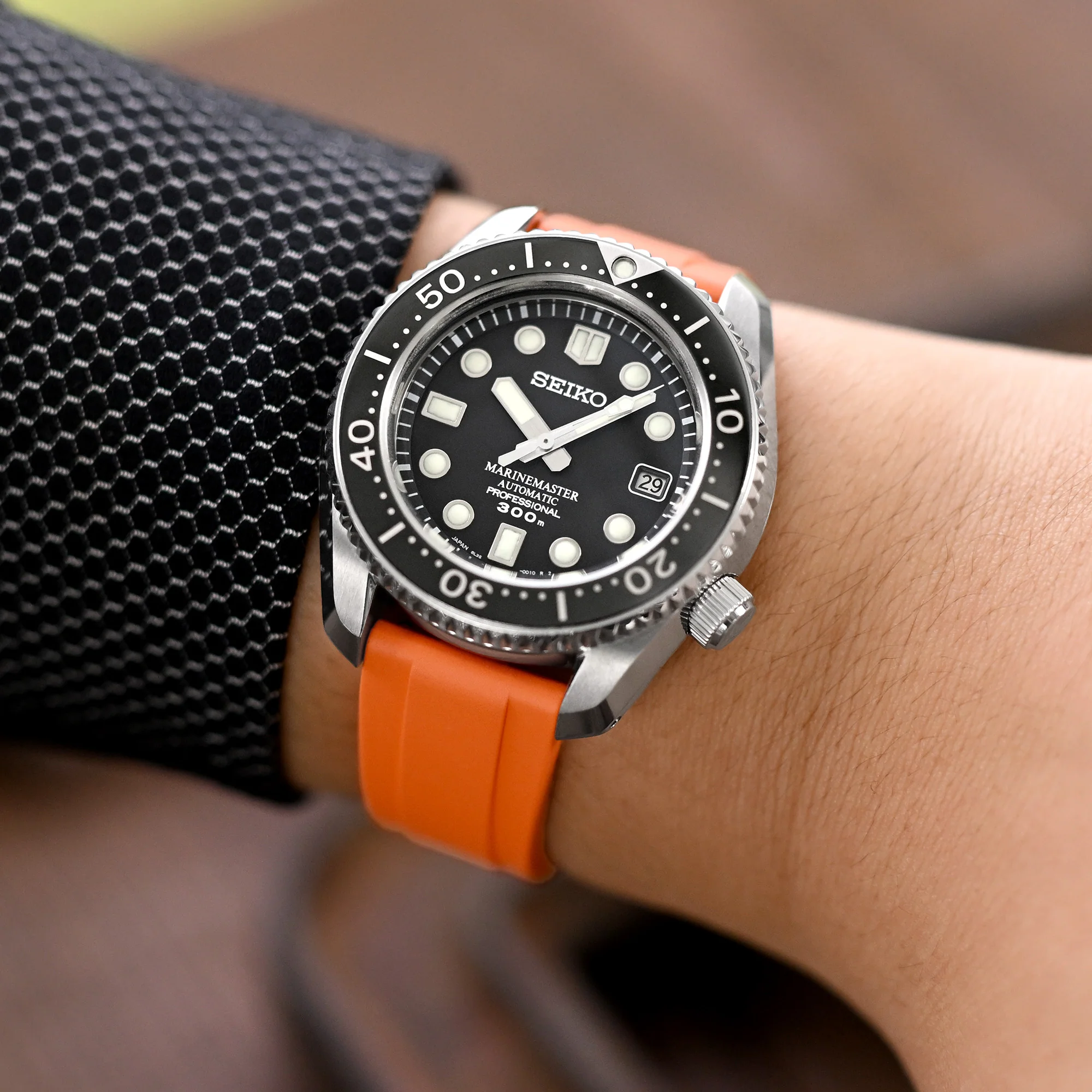 Watch Bands Lookbook demo watches by Strapcode: Seiko Prospex Automatic 1968 Diver Baby Marinemaster SPB185 - Item no. : FKM27J-20A18BDE25 / FKM27J-22A18BDE25